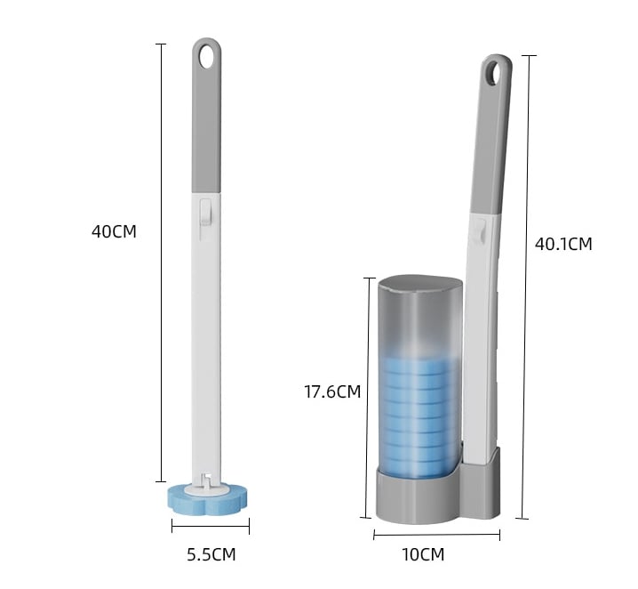 Tämä integroitu kylpyhuoneen puhdistuslaite koostuu uudelleenkäytettävästä puhdistussauvasta, tyylikkäästä säilytyskotelosta ja kertakäyttöisistä vaihtopäistä, joissa on sisäänrakennetut sienet.