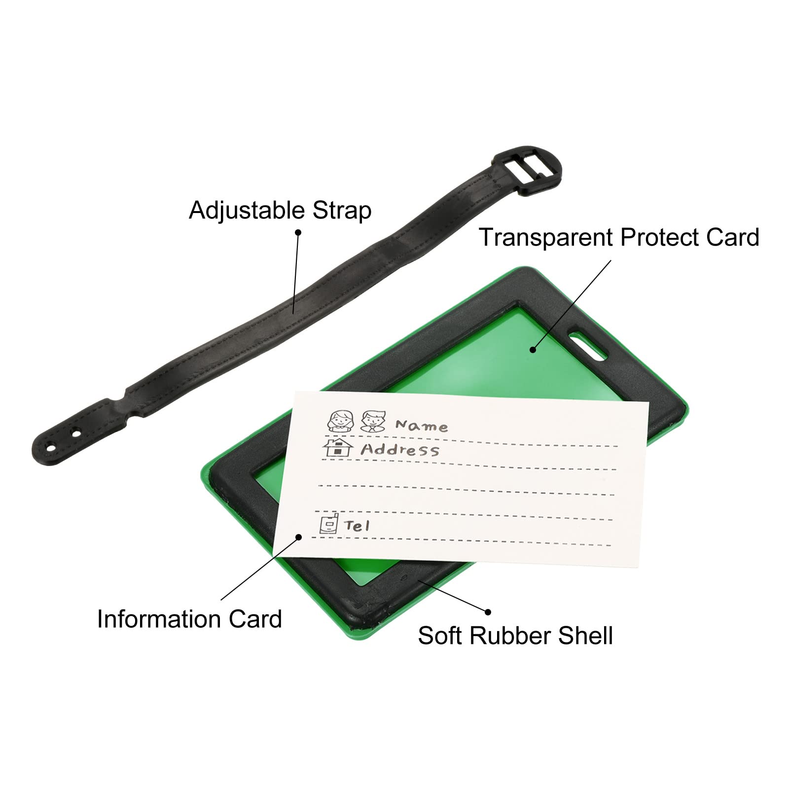 Valmistettu kestävästä pehmeästä kumista, se on kevyt, joustava, ei helposti rikkoutuva ja kestävä. Etiketin pinta on peitetty läpinäkyvällä PVC-päällysteellä, joka estää korttitietojesi likaantumisen. Säädettävä, kestävä PVC-nauhalenkki, joka on suunniteltu estämään tarrojen halkeilua tai katoamista.