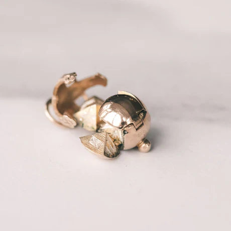 Tämä riipus on vintage-luovuuden mestariteos! Se alkaa tyylikkäänä, saranoituna pallona – avaa yläosan saranakotelo, ja se avautuu ristin muotoon kuuden pyramidin kärjen osoittaessa ylöspäin. Jokaiseen pyramidin sivupintaan on kaiverrettu ikonisia vapaamuurarien symboleja – kuten suorakulmio ja harppi, kaikkitietävä silmä, pääkallo ja ristikkäiset luut, Daavidin tähti ja muita. Se on piilotettu koodi, veljeskunnan tunnus ja taideteos, jotka on yhdistetty yhdeksi pieneksi aarteeksi.
