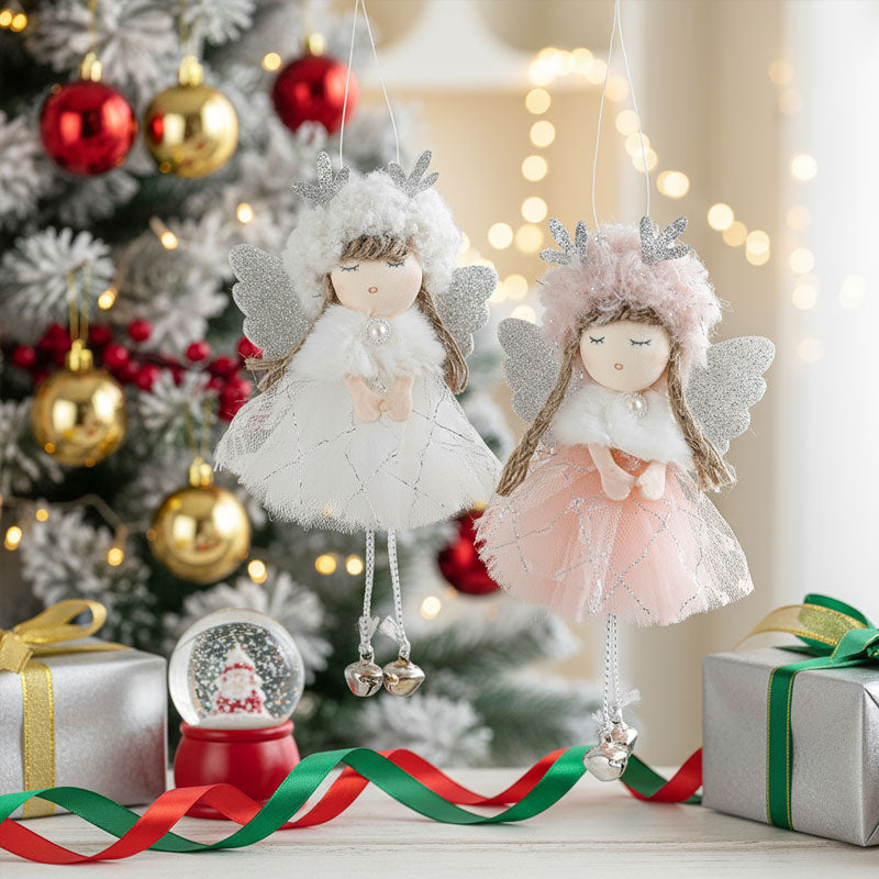 Tee joulukuusestasi vieläkin taianomaisempi näillä suloisilla enkelityttö-ripustuksilla, joissa on pehmeät materiaalit, kimaltelevat siivet ja söpöt poronsarvet 🦌✨.