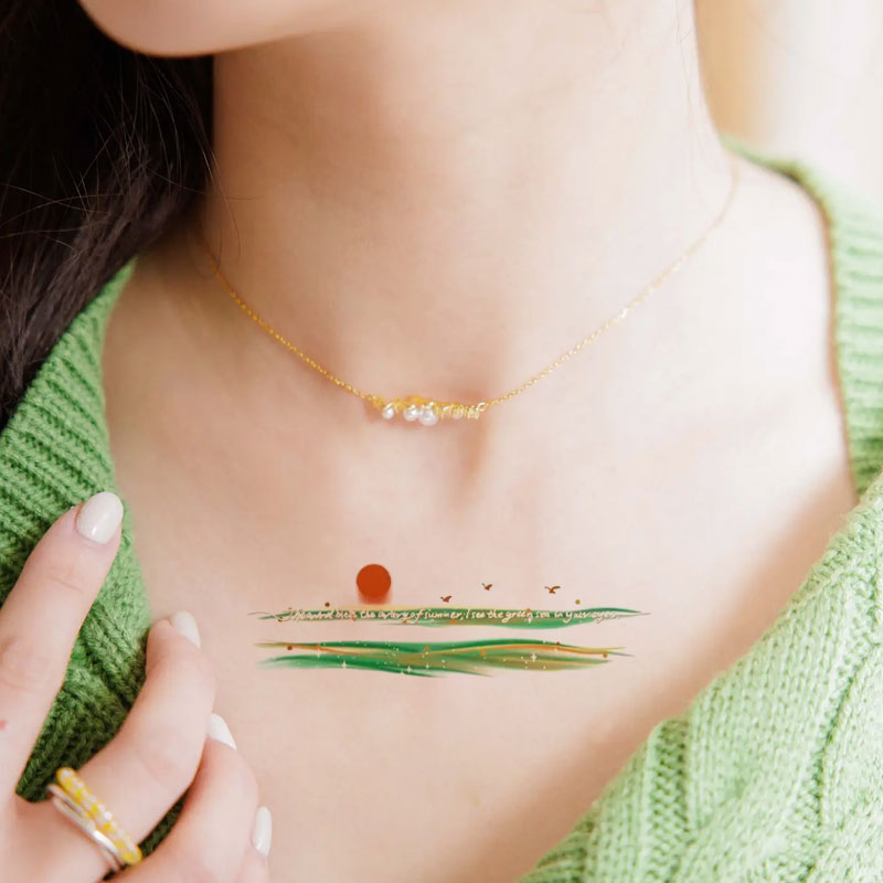 Valmistettu ammattimaisista vedenpitävistä materiaaleista, joten sinun ei tarvitse huolehtia vesiroiskeista tai hikoilusta. Olitpa sitten juhlissa, rannalla tai musiikkifestivaaleilla, tatuointisi pysyy kirkkaana ja kestää pidempään 🎉