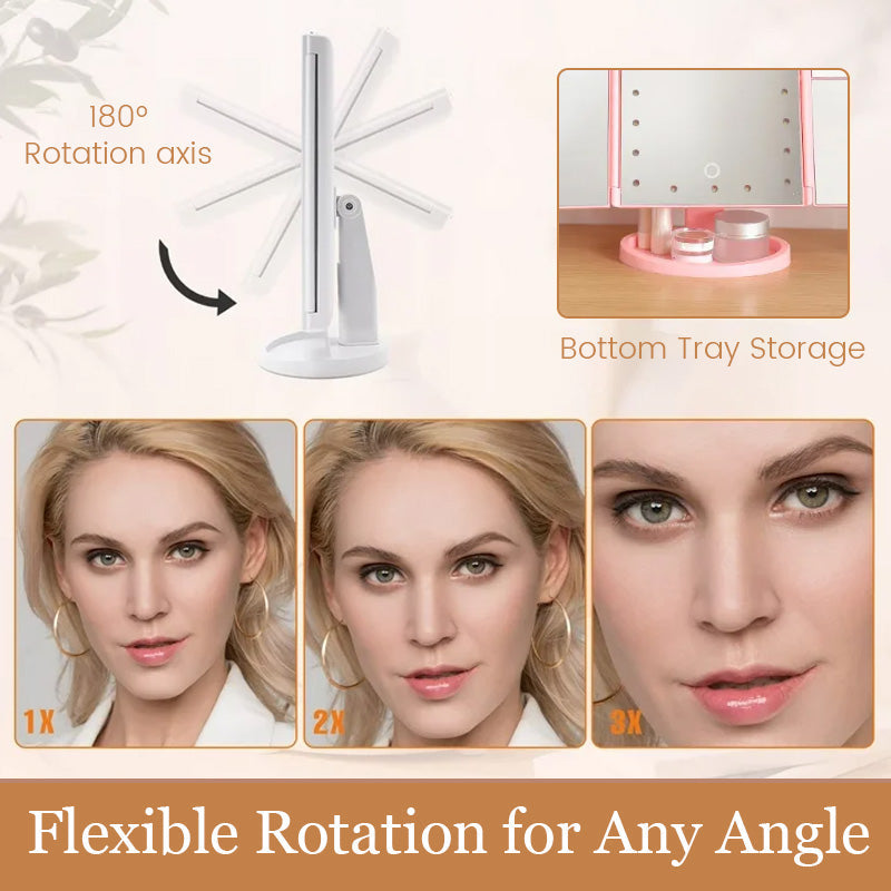 {Ilmainen Toimitus}Kolmen puolen taittuva Led Makeup Mirror -peili