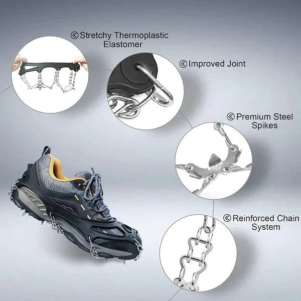 PÀivitetyt liukumattomat piikkamme estÀvÀt sinua liukastumasta ja vahingoittamasta itseÀsi lumella tai jÀÀllÀ kÀvellessÀ, ja niitÀ kÀyttÀvÀt laajalti juoksijat, kÀvelijÀt, retkeilijÀt ja talviurheilijat.